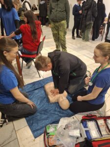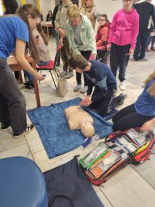 V úterý dne 14. 4. 2026 proběhl v KD Jesenice již tradiční Den pro zdraví. Žáci studijního oboru Ošetřovatel nabídli ostatním žákům i veřejnosti několik zajímavých stanovišť. Veškerá stanoviště souvisela se zdravým životním stylem nebo se zaobírala tématikou zdraví obecně. Všichni příchozí si mohli vyzkoušet, jaké to je chodit po vyznačené trase s tzv. „opileckými brýlemi“. Dále na ně čekala zkouška v podobě síly jejich plic, potažmo dechu při nafukování balónku. U dalšího stanoviště si všichni zúčastnění osvěžili svou paměť při sestavování potravinové pyramidy a kdo měl zájem, mohl si také nechat změřit svůj krevní tlak, v neposlední řadě se potrénovat při poskytnutí první pomoci na resuscitační figuríně. Dalším zpestřením celého programu byla prodejní nabídka „zdravých“ cukrářských výrobků, které připravili žáci oboru Cukrář. Po celou dobu trvání akce také probíhala bezplatná ochutnávka salátů, které pro tuto událost nachystaly naše paní kuchařky ze školní kuchyně. Každý žák si po absolvování všech stanovišť odnesl diplom malého zdravotníka. Jako drobnou pozornost pro mladší účastníky připravily žákyně naší školy pejsky z nafukovacích balónků.