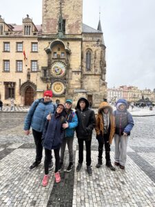 Jak už to tak bývá, každý školní rok je jeden Klub poslední. A tak jsme si připravili program, který spojoval zábavu, dobrodružství, kulturu i dobré jídlo. Tentokrát to vyšlo na čtvrtek 12.března 2026. Vydali jsme se opět do centra Prahy, do ulice Celetné, kde je expozice Madame Tussauds. Abychom tam trefili, šli jsme podle mapy, kontrolovali jsme názvy stanic, ulic, náměstí. Našli jsme to správné muzeum – voskové figuríny historických postav i současných osobností. Mohli jsme se fotit a mistrem Hanušem, Janem Husem, prezidentem T. G. Masarykem, skladatelem Antonínem Dvořákem, králem a císařem Karlem IV.. Ze současných osobností se jednalo zejména o sportovce, herce, zpěváky české i světové, Cristiana Ronalda nebo Davida Beckhama, Michaela Jacksona, Lady Gaga, Fredyho Merkuryho nebo Angelinu Jolie. Nechyběly ani české osobnosti, například Pavel Nedvěd, Karel Roden nebo Aňa Gaislerová. Děti si se zájmem prohlížely postavy slavných osobností z historie, filmu i sportu. Figuríny vypadaly velmi realisticky a skoro to vypadalo, jako by byly živé, a tak jsme se hodně fotili. Poté jsme si prohlédli pamětihodnosti Staroměstského náměstí i Orloj a začalo pršet. V mokrých bundách jsme došli do Bageterie Bouleward, kde jsme se osušili, posilnili a odpočinuli si. A když se nachýlil čas, přesunuli jsme se do Divadla v Dlouhé na představení O líné babičce. Příběh je o babičce, která je podle rodiny „líná“, protože nechce pořád jen uklízet a vařit. Místo toho si plní své sny a zažívá různá dobrodružství. Cestuje, poznává nové věci a ukazuje, že život může být plný radosti i ve stáří. Nakonec všichni zjistí, že babička vlastně není líná, ale jen chce žít po svém. Byla to veselá pohádka plná humoru a dobrodružství. Divadelní představení bylo vtipné, plné světových hitů v originále či s českým textem, a hlavně žádný reprák! Jen živá hudba, kterou zvládli sami učinkující. Je až s podivem, jak krásně jim to znělo. Po divadle jsme se opět metrem vrátili z centra Prahy na okraj a linkovým autobusem zpět do Rakovníka, kde na nás již čekal pan řidič a zavezl nás zpět ke škole. A tím skončil letošní poslední Klub mladého diváka. A co vy? Nechcete být také členem naší party?